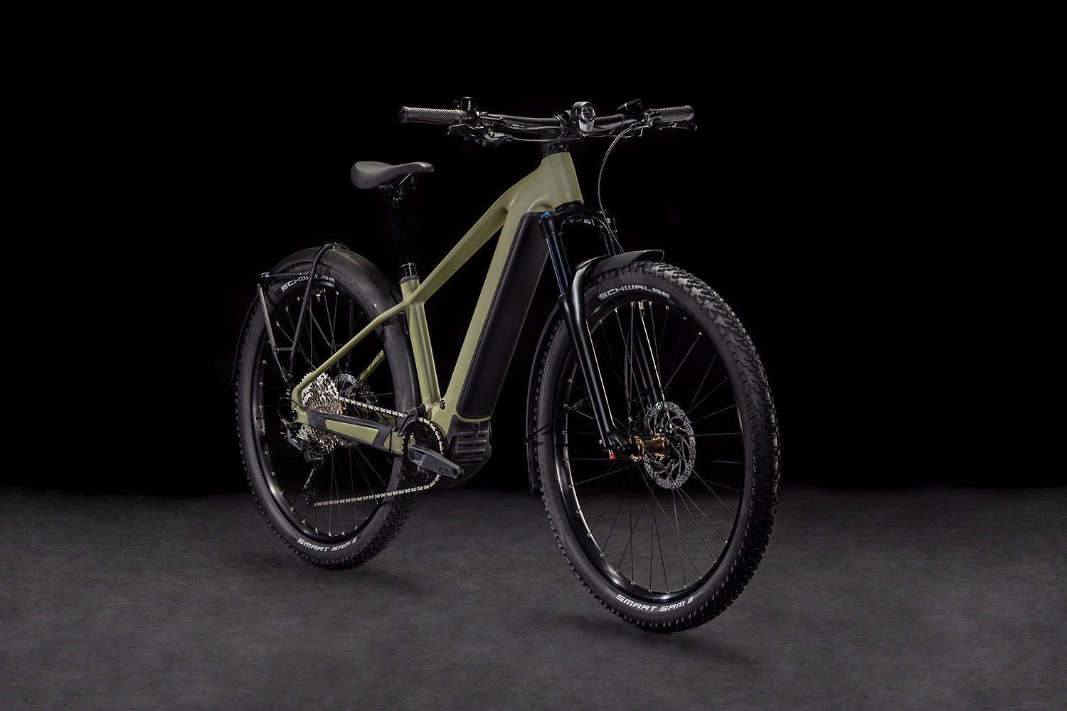 Pour redescendre de l’autre côté, Cube a installé de puissants freins à disque hydrauliques Shimano et des pneus Schwalbe de 2,6 pouces très accrocheurs. Il y a aussi une fourche à suspension pneumatique avec un débattement de 120 mm (100 mm pour les petites tailles de cadre et pour tous les modèles Easy Entry), et une tige de selle tombante à distance pour plus de confort et de contrôle sur les sentiers plus accidentés.