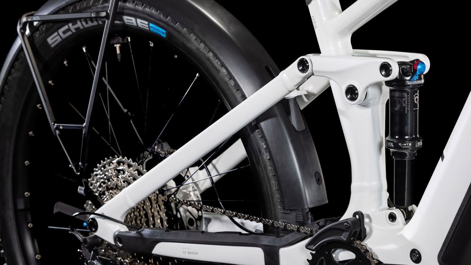 Le Cube Stereo Hybrid ONE44 EXC Allroad est un vélo qui peut tout faire et qui s’adapte à tout. Il est équipé de série de garde-boue, d’un porte-bagages et d’un système d’éclairage. Il fait ainsi aussi bien son travail sur le trajet quotidien vers le bureau que comme tourer classique et comme puissant bikepacker lors de voyages plus longs. Mais ce n’est pas tout : le Fully doit ses qualités de tout-terrain aux 140 mm de débattement de la fourche suspendue Fox 36 AWL Float et de l’amortisseur Float Rhythm RC.