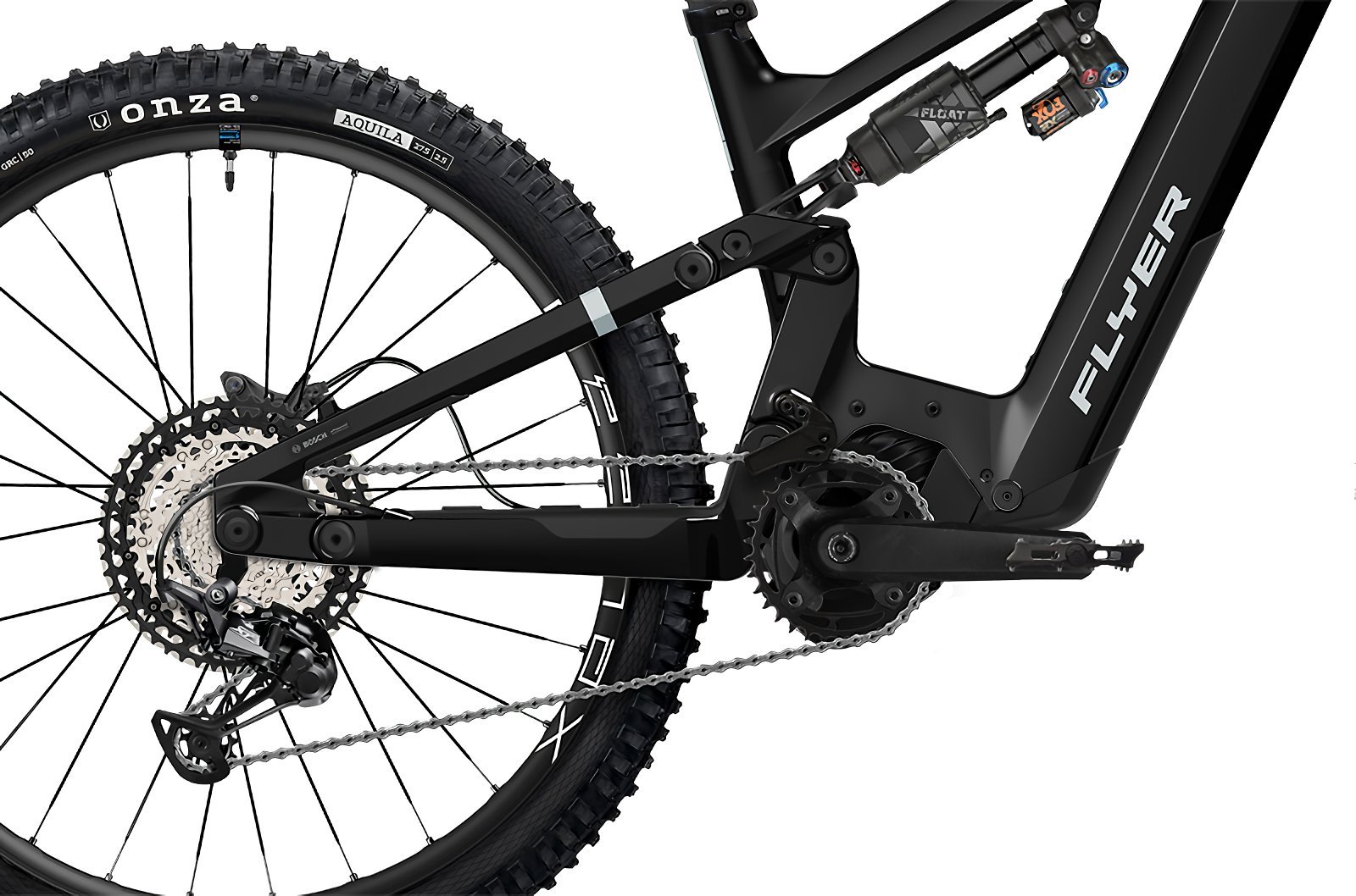 | Cadre: | Engineered by FLYER, Internal cable routing, 4-link suspension, 165 mm, 12 × 148 mm |